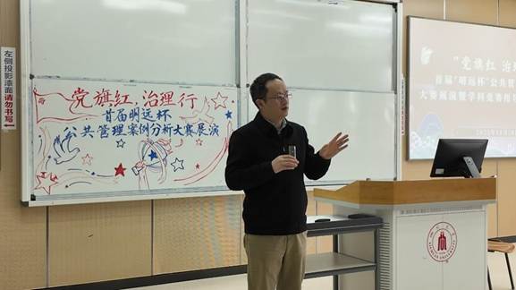 随后,行政管理系主任李强彬老师就“明远杯”公共管理案例分析大赛的立意和背景做了介绍,希望同学们面向实践,以案促学、以案说理、以案促研,将个人的学习与成长融入时代的发展。