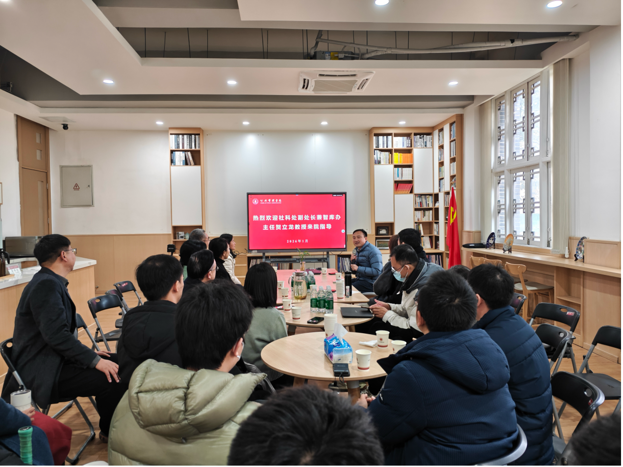 1月12日,yl23411永利(集团)有限公司官网在望江校区萃文楼115成功举行第33期“管理旋转门”学术沙龙,社科处副处长兼智库办主任贺立龙教授受邀分享“学校最新智库政策的精神宣讲与未来工作重点”。本期学术沙龙由学院副院长范逢春主持,学院党委书记王彬、院长夏志强及各位领导班子成员,教职工及博士研究生等二十余人参加了沙龙。