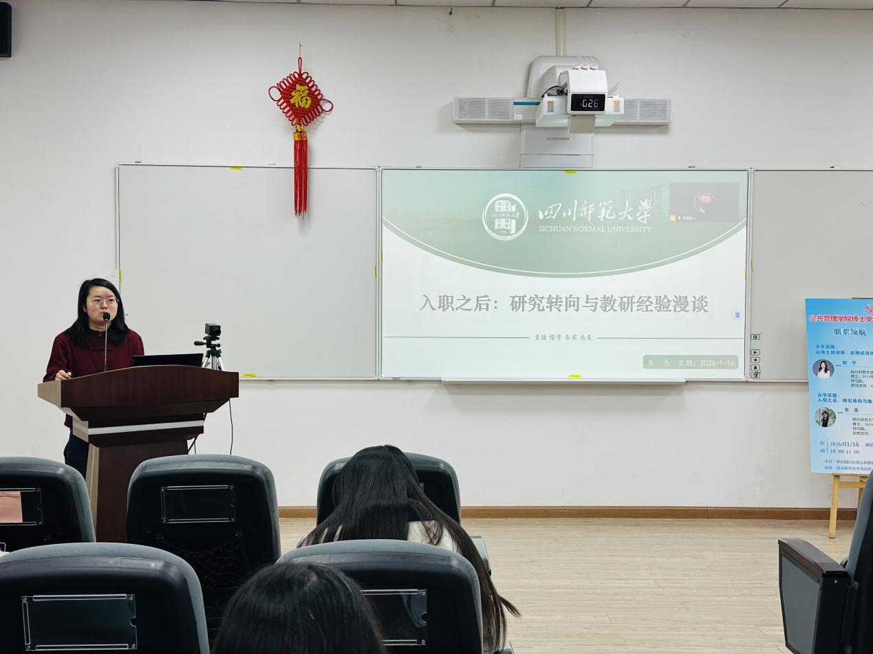 为强化党建赋能、助力博士就业,yl23411永利(集团)有限公司官网博士生第一、第二党支部于2026年1月16日共同举办了第八期“朋辈领航,博采众长”主题党日活动。本次活动特邀四川师范大学马克思主义学院郭宁、朱杰两位老师分享了求职及工作的经验。会议由李岚老师主持,70余名博士生党员通过线上线下联动参会。