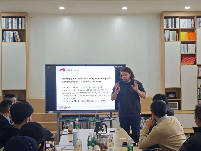 2026年3月4日下午,香港城市大学人文艺术与社会科学学院副院长、公共与国际事务学系教授Bert George教授应邀到访我院,在萃文楼115会议室为我院师生作题为“Getting published and having impact in public administration - a personal journey”的精彩讲座。参加讲座的有我院范逢春副院长、李强彬教授、刘磊教授、郑莉副教授、刘传军副教授、吴德胜副研究员、谷建岭老师以及我院硕博研究生。