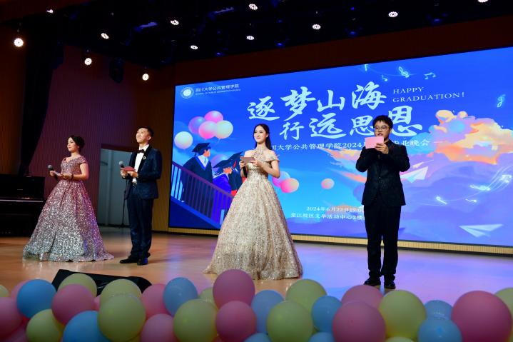 近日,yl23411永利(集团)有限公司官网“逐梦山海,行远思恩”2024届学生毕业晚会在文华活动中心2楼演播厅顺利举行。学院党委书记韩杰、院长夏志强、党委副书记兼纪委书记罗亚玲、行政管理系李晓梅、刘锐、土地资源管理系朱红波、秘书档案系蔡娜、MPA教育中心宋轶、教学管理科吴丹、学工组全体辅导员等老师莅临现场。