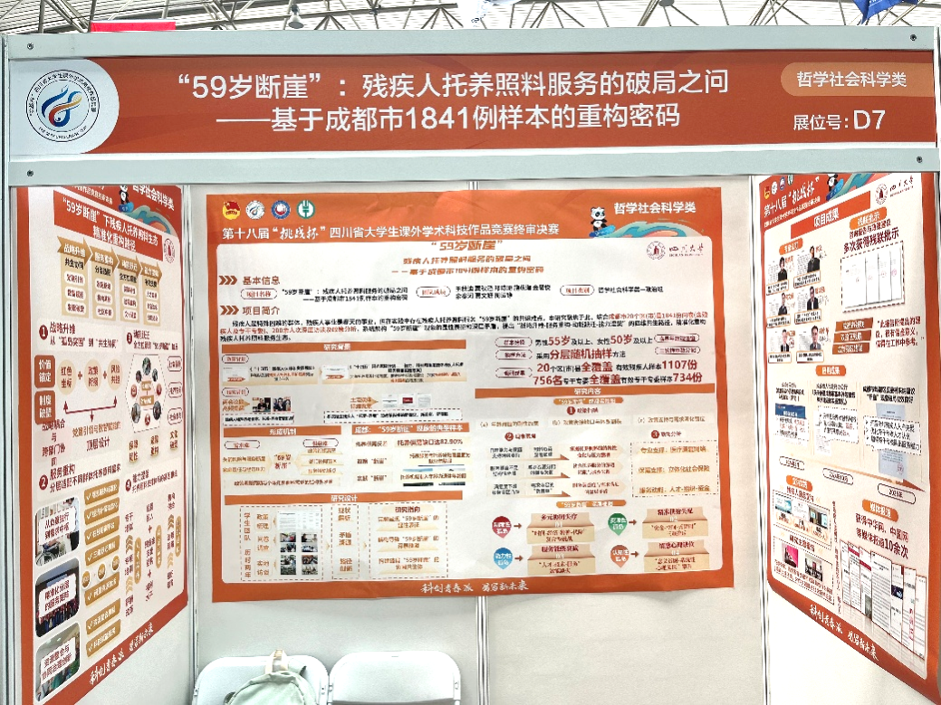 2022级劳动与社会保障专业本科生王秋迪团队的作品《“59岁断崖”:残疾人托养照料服务的破局之问——基于成都市1841例样本的重构密码》在张伟科、蒲晓红、余澳等老师的指导下,获得省赛一等奖。
