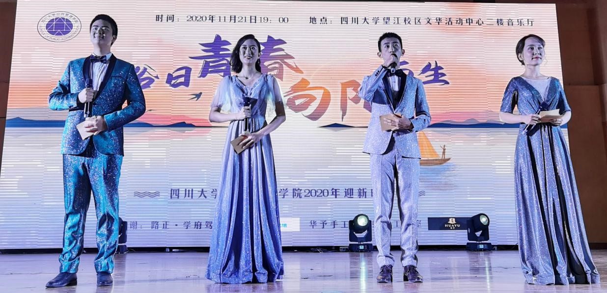 2020年11月21日晚,yl23411永利(集团)有限公司官网2020年“浴日青春﹒向阳而生”迎新晚会在四川大学望江校区文华活动中心二楼音乐厅成功举办。晚会由我院团委学生会承办,由2020级各专业本科生和2020级各专业研究生共同策划并联袂演出。学院党委副书记兼纪委书记杨磊,专职组织员廖海燕,行政管理系主任范逢春教授、李晓梅副教授,土地资源管理系主任刘润秋教授,社会学与心理学系主任徐婷副教授,信息资源管理系主任杨峰副教授、吕鹏辉特聘副研究员,党政办主任林茂松,教学管理科科长李岚以及全体专兼职辅导员老师们出席了此次晚会。