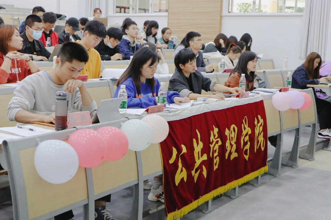 学院团委书记青杨媚首先为大会致词。她对上半年学生防疫志愿工作与暑期社会实践活动进行了简明介绍。疫情爆发以来,我院130多名学子积极参与到各类防疫志愿工作,他们的身影遍布在广西、四川、厦门、新疆、陕西等多个地区。在暑期社会实践中,我院学子秉持“纸上得来终觉浅,绝知此事要躬行”的信念,坚持调查研究的态度,积极参与各类社会实践活动,通过乡村调研感受乡村发展足迹,通过政务实习和企业实习检视理论学习的效力,通过探访红色遗址传承红色精神,以知行合一的态度践行公管学子的时代担当,以躬身入局的行动绘就公管学子的成长路径。