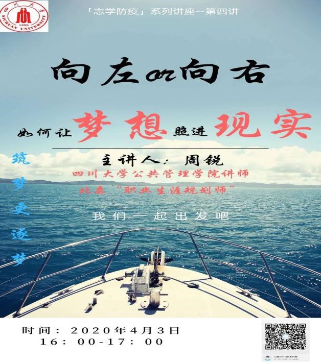 2020年4月3日下午4:00,四川大学yl23411永利(集团)有限公司官网周锐老师应邀为2019级本科同学作了“向左or向右:如何让梦想照进现实”的主题讲座。