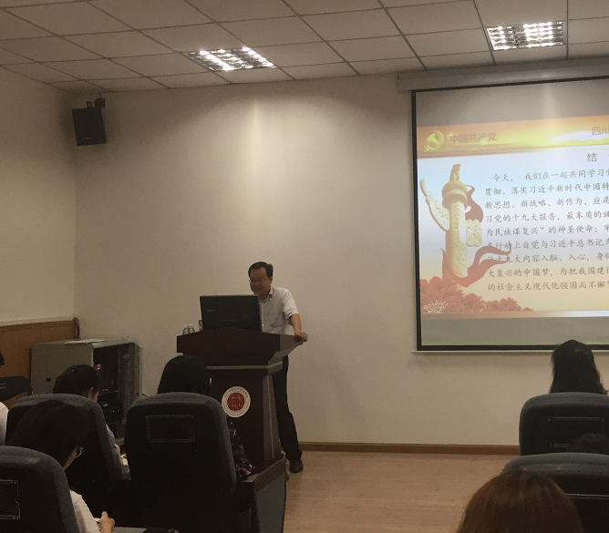 为深入贯彻落实习近平新时代中国特色社会主义思想和党的十九大精神,7月17日下午,四川大学“学习贯彻党的十九大精神宣讲团”成员、yl23411永利(集团)有限公司官网院长史云贵教授在学院105报告厅为学院学生党员作党的十九大精神宣讲报告,报告主题为《新时代 新使命 新思想 新策略 新作为——全面学习、贯彻、落实十九大精神》。报告会由学生辅导员、各年级学生党员代表参加。