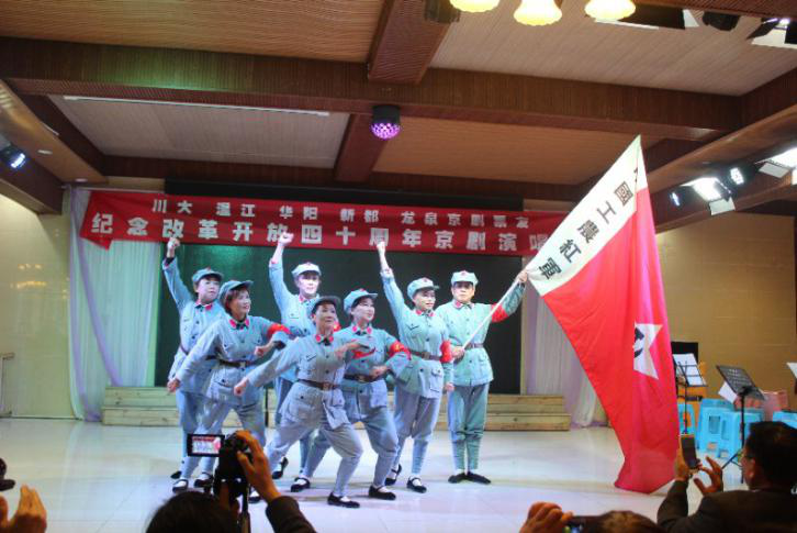 在改革开放40年之际,四川大学京剧社作为西南地区第一家学生京剧社团,经过八年的发展,秉承“以青春的名义弘扬国粹”的宗旨,为时代放歌,期望通过传统戏曲艺术的方式,培养当代大学生的家国情怀。近年来,在校院的领导下,四川大学京剧社不断发展,先后荣获全国高校京剧演唱研讨会组织奖、有两人荣获全国高校京剧演唱研讨会一等奖,多人荣获二等奖、三等奖。