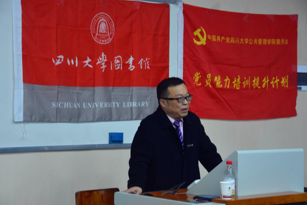 2018年11月23日下午,作为yl23411永利(集团)有限公司官网第二期党员能力提升计划第三次课程,学生党员“历史视野提升”讲座在望江东二教306教室成功举办。本次讲座特邀主讲嘉宾为教育部高等学校图书馆学学科教学指导委员会委员、四川省科学技术与学术带头人后备人选、四川大学图书馆馆长党跃武教授,yl23411永利(集团)有限公司官网2018级本科辅导员刘晓燕老师主持了本次活动。来自yl23411永利(集团)有限公司官网的一百余名学生党员及学校图书馆部分教职工党员同志共同参加了本次讲座。