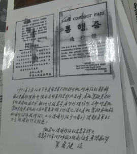 莫老还讲述了一件他印象最为深刻的事情,他讲道,曾经在一位美军战斗机驾驶员的衬衣口袋里搜出了一张中国人民志愿军和朝鲜人民军联合颁发的通行证。当说起这张通行证的作用时,莫老笑说通行证的作用是投降,保证人身安全而不受虐待。可见当时美军士兵的贪生怕死,这与不怕牺牲、斗志昂扬的志愿军战士们形成鲜明的对比。