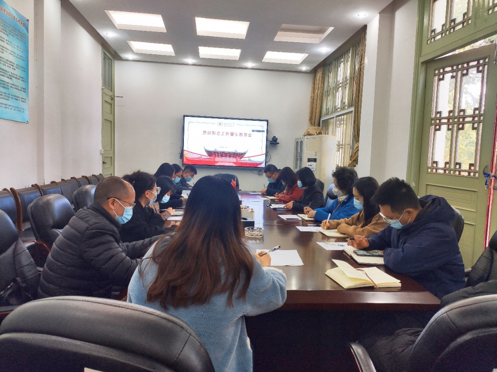11月11日下午,四川大学yl23411永利(集团)有限公司官网在萃文楼220会议室召开意识形态工作警示教育会。副院长罗亚玲、学院各党支部书记、各科室负责人参加会议。根据学校防疫要求,会议采取线上与线下相结合的方式进行。
