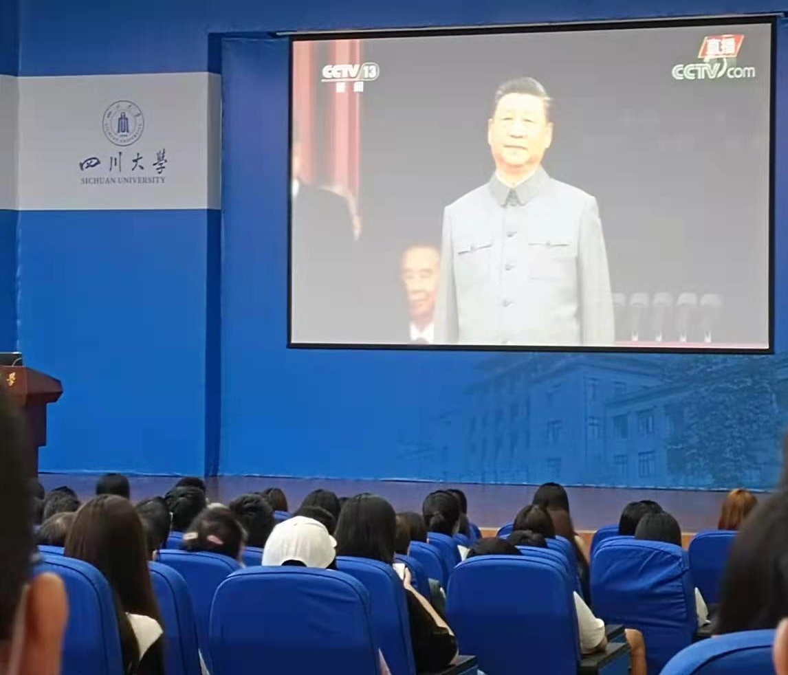 在望江校区的东三演播厅,在江安校区的水上报告厅,在学院的会议室,在宽敞明亮的教室里,在书香浓郁的图书馆,在朝气蓬勃的宿舍里,公管同学们与全体中华儿女共同观看了这次庆祝大会,在这重要的时刻,感受着百年的荣光。同学们认真聆听了习近平总书记在中国共产党成立100周年庆祝大会上的重要讲话,深切感受到中国共产党在中国这一路发展中所起的重要领导作用。习近平总书记提到,未来属于青年,希望寄予青年。新时代的中国青年要以实现中华民族伟大复兴为己任,增强做中国人的志气、骨气、底气,不负时代,不负韶华,不负党和人民的殷切期望!在党的100岁生日之际,同学们都为自己生于中国而骄傲、为有党的领导而自豪。中国梦还在继续,吾辈当自强不息!