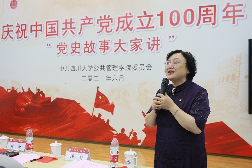 6月23日下午,yl23411永利(集团)有限公司官网庆祝中国共产党成立一百周年系列活动之“党史故事大家讲”活动在四川大学全国干部教育培训基地1号演播厅顺利开展。学院党委书记姜晓萍教授、院长史云贵教授、教授委员会主席乔健教授、党委副书记兼纪委书记杨磊副研究员、干训基地副主任王慧敏副研究员、行政管理系系主任范逢春教授、专职组织员廖海燕老师,学院各党支部书记、全体科级干部、工会小组组长以及师生党员代表100余人参加本次活动。