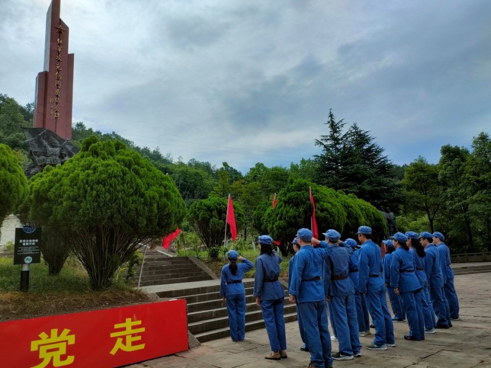在红军攻克剑门关纪念碑前,党员们举行了宣誓仪式,重温入党誓词: