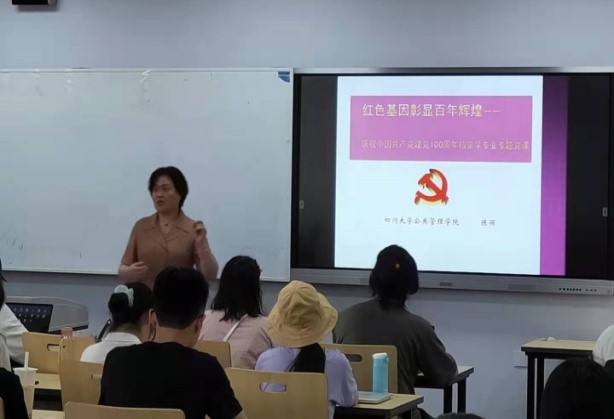 为庆祝中国共产党建党100周年,为使档案专业学生进一步了解红色档案在中国共产党发展历史记录中的重要价值,缅怀革命英烈的光辉事迹,教工二支部于2021年6月11日在四川大学江安校区一教D406教室组织档案学专业2019级和2020级本科学生进行了题为“红色基因彰显百年辉煌——档案学专业专题党课”学习。