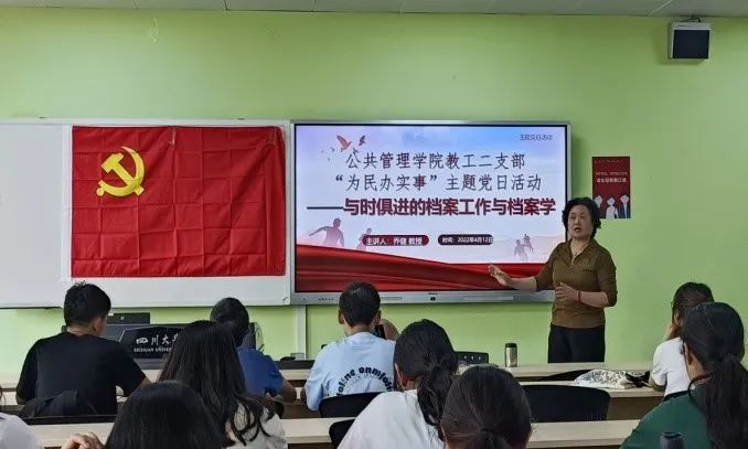 为切实抓好党史学习教育“我为群众办实事”实践活动,实现政治思想引领专业发展的工作目标,加深档案专业同学对档案学学科认识,2022年4月12日下午,yl23411永利(集团)有限公司官网教工二支部于江安校区综合楼B座305教室举行了“为民办实事”系列主题活动之“与时俱进的档案工作与档案学”专题讲座,由秘书档案学系乔健教授主讲,教工二支部书记陈丽教授主持,档案学专业21级全体同学和20级部分同学参加。
