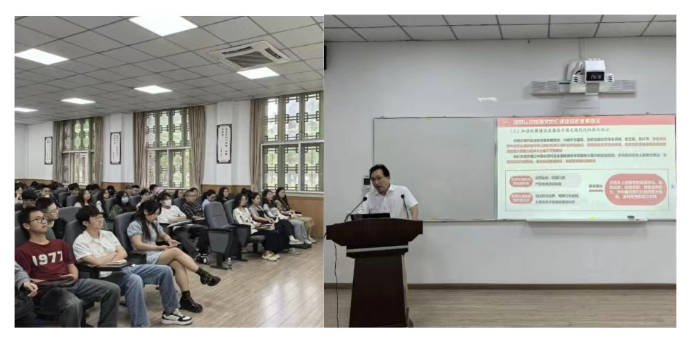 韩杰以“深入学习贯彻《条例》,筑牢纪律规矩意识,切实增强‘四个定力’”为题,从“深刻认识加强党的纪律建设的重要意义”“准确把握《条例》修订的主旨要义”“深化纪律教育切实增强‘四个定力’”“对毕业生寄语”四个方面,并结合典型案例进行了讲授。他指出,纪律教育是落实全面从严治党要求、加强党的纪律建设的一项基础性、经常性工作,全体党员要认真学习《中国共产党纪律处分条例》,强化纪律意识、加强自我约束、提高免疫能力,增强政治定力、纪律定力、道德定力、抵腐定力。同时,韩杰寄语即将走向社会的广大毕业班同学,要时刻牢记自己的党员身份,始终坚守初心使命,做到廉洁、诚信、公正、敬业,做有家国情怀、有担当的时代好青年。