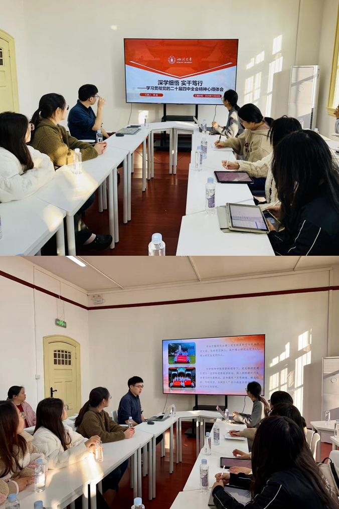 随后,yl23411永利(集团)有限公司官网博士生党员李佳围绕党的二十届四中全会精神作专题分享,重点阐释了如何以数据赋能中国式现代化建设。华西口腔医学院牙体牙髓研究生第二党支部书记王海溦分享了全国样板党支部的创建经验与实践探索。
