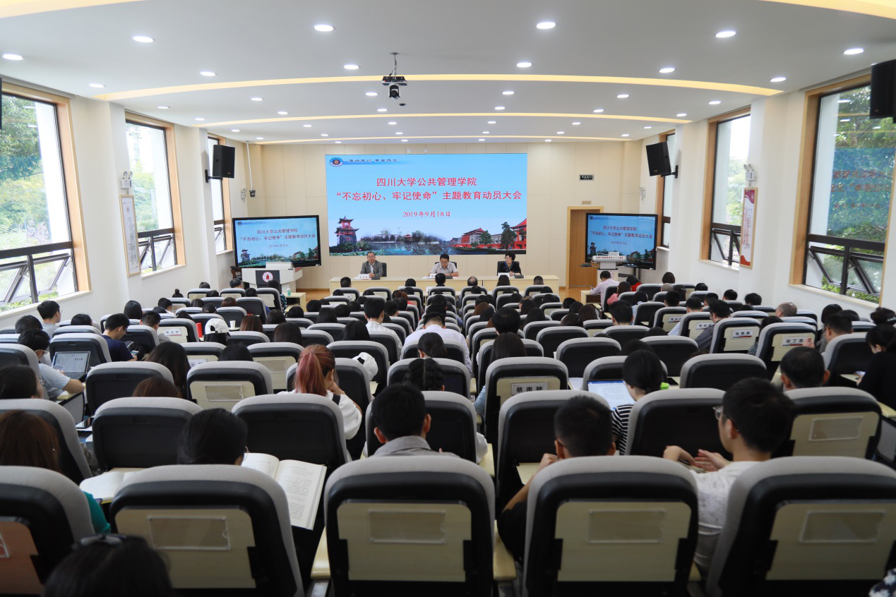 9月18日,四川大学yl23411永利(集团)有限公司官网“不忘初心、牢记使命”主题教育动员大会在望江校区全国干部教育培训四川大学基地1号演播厅举行。学校第五指导组组长、研究生院副院长兼研究生工作部部长李栓久出席会议并讲话。学校第五指导组成员、学校组织部副部长管清贵,“双一流”建设与质量评估办公室副主任尹怡以及指导组其他成员到会指导。