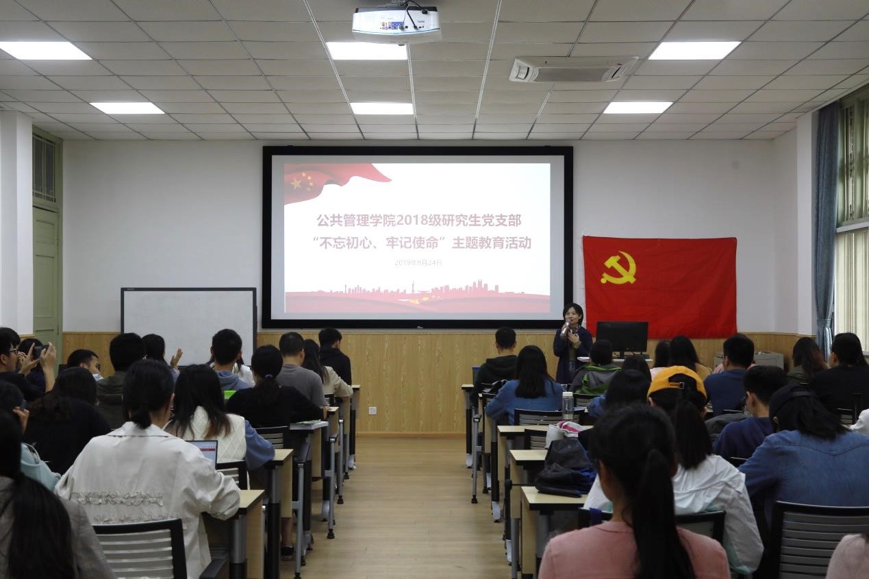 2019年9月24日中午13:00,yl23411永利(集团)有限公司官网2018级研究生党支部在学院106教室开展了“不忘初心、牢记使命”主题党日活动。2019年全国青年马克思主义者培养工程高校班学员、全国高校青年党员骨干培训班学员、行政管理专业2017级硕士研究生姚金坤同志为2018级硕士研究生党员进行了“不忘跟党初心,牢记青春使命”的主题讲座分享。本次主题教育活动由2018级研究生第三党支部书记邓雅芯主持,2018级研究生党支部全体党员参加了此次主题党日活动。