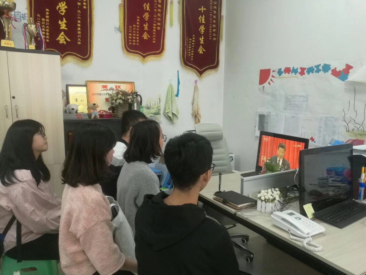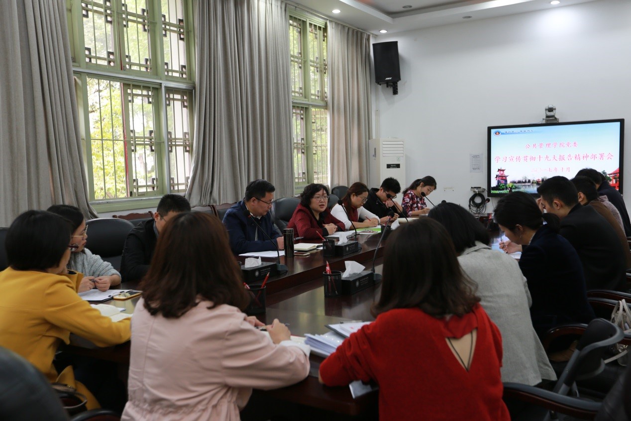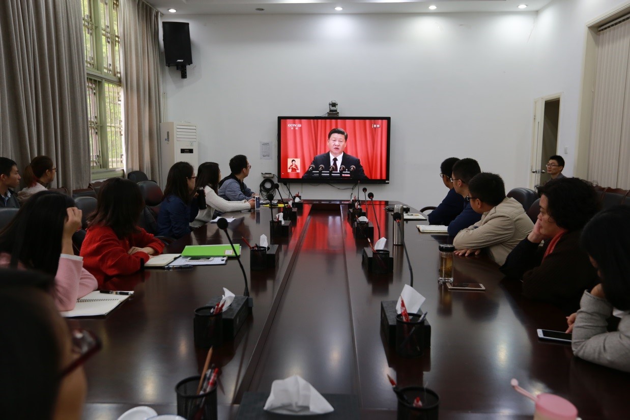 集中收看开幕会实况和听完习近平总书记报告后,学院党委书记姜晓萍同志立即召开学院党委扩大会,对如何学习、宣传和贯彻落实十九大报告精神进行了全面部署。