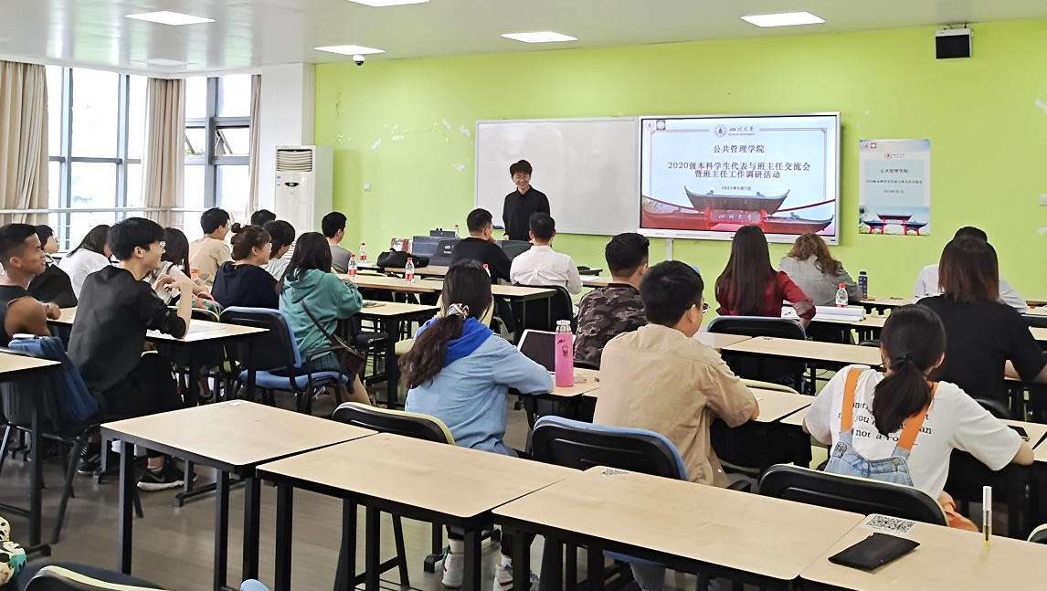 5月7日下午3:00,本次学生代表与班主任交流会在四川大学江安校区综合楼B407展开。首先,我院本科教务办吴菁老师介绍了各专业参会班主任代表,以及对四川大学班主任制度背景、班主任定位、班主任职责和班主任工作开展等情况。紧接着,2020级辅导员苟欢老师对参会学生代表进行介绍,并引导学生就各专业的共性问题进行发言。