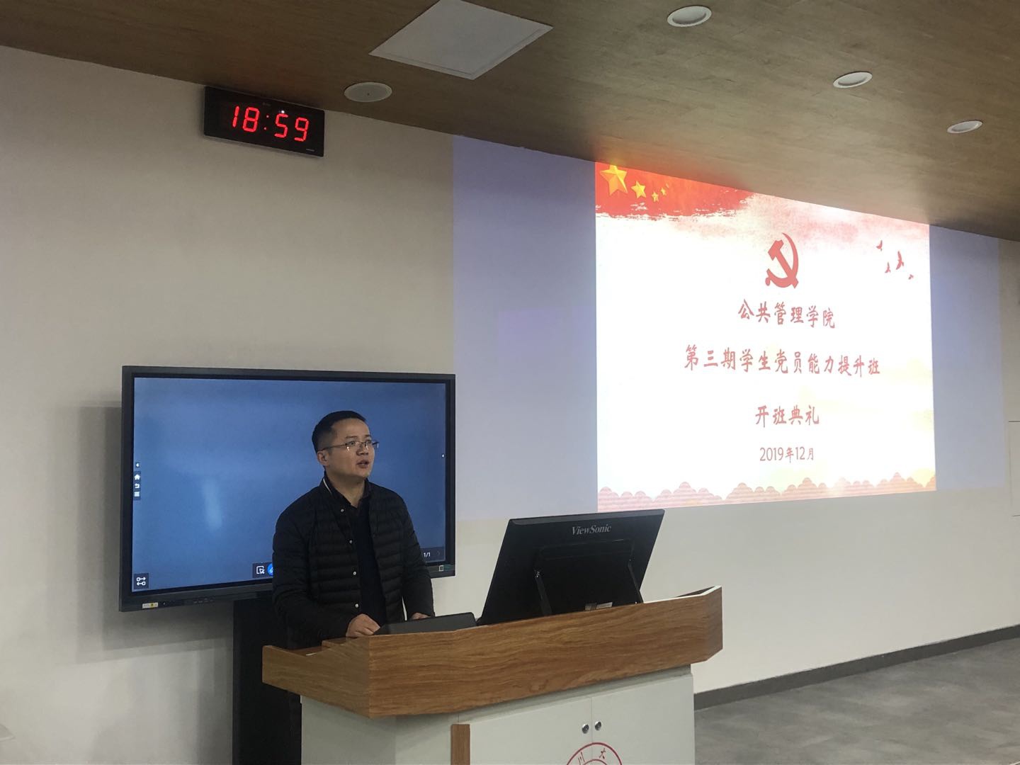 2019年12月13日19时,我院第三期学生党员能力提升班开班典礼在望江校区基础教学楼C座101教室顺利举行。学院党委副书记兼纪委书记杨磊老师和2017级本科专职辅导员周锐老师、2016级本科专职辅导员兼学生科副科长陈萱源老师以及本次党员能力提升班108位学员出席了典礼,典礼由陈萱源老师主持。