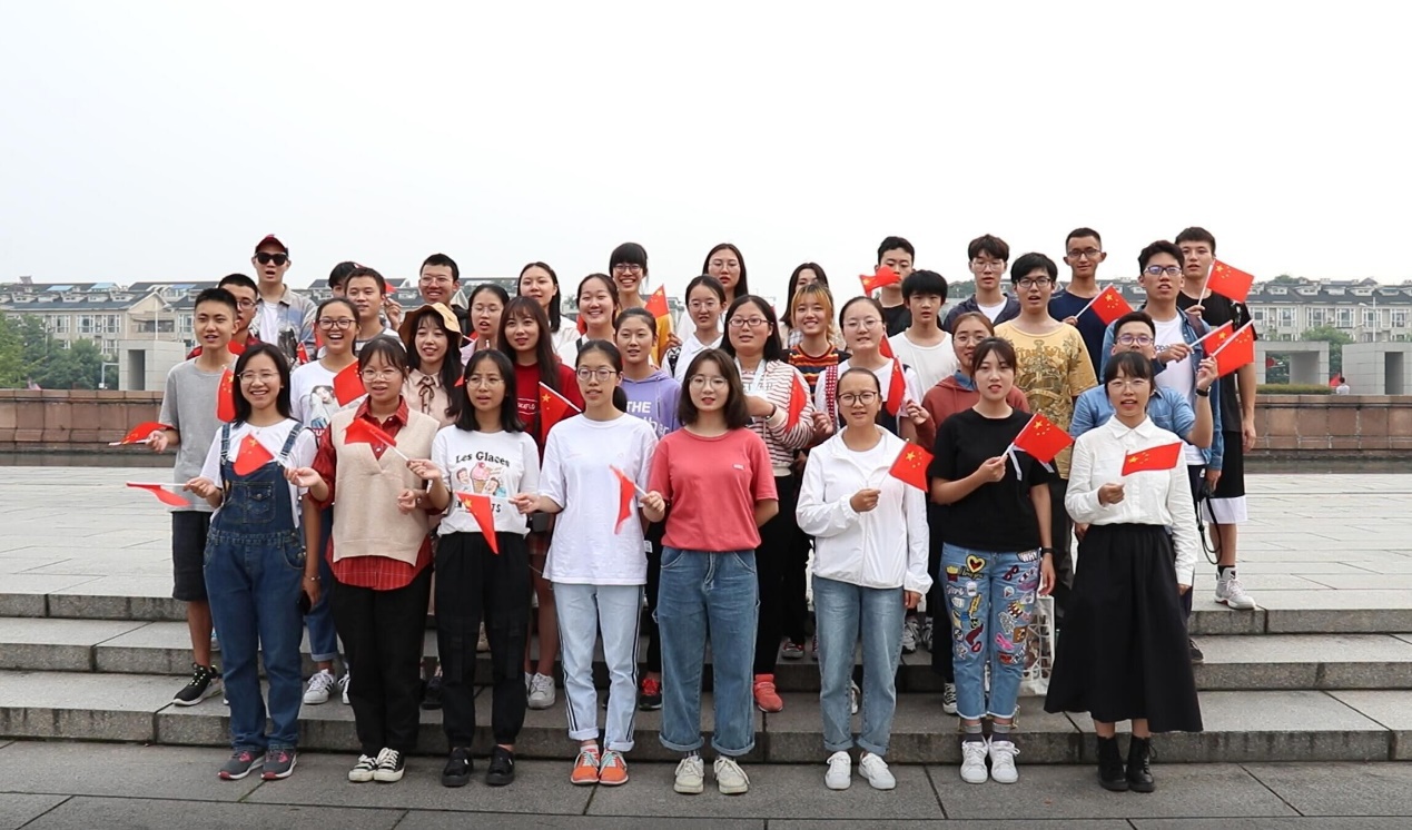 同学们挥动手中的五星红旗,在悠扬的伴奏中激情满怀共同唱响《我和我的祖国》,为祖国七十华诞献上千禧一代的贺礼。歌声洋溢着青年强、国家强的蓬勃生机,每一个音符都表达着同学们与祖国同命运、共进退的坚韧不拔之志。