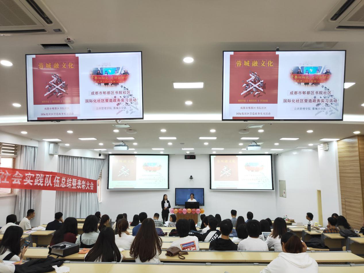 本次总结暨表彰大会共有十二支社会实践队伍入围,他们的足迹遍及祖国的大江南北,包括湖南、四川、陕西、山西、甘肃,重庆、贵州、广西等地。“云上祈梦”队专注于羌族文化的传承与保护调查,“蓉城小分队”对郫都区书院社区的国际化社区营造开展了实习调研,“超蚌”队从产业扶贫的视角透视贵州六盘水刺梨产业发展,“江口行支教”队和“索玛花小分队”从关爱贵州和凉山留守儿童的视角进行社会实践,“搞完就收”队开展了驻村扶贫干部工作机制研究,“乡土映初心”队和“改革春风吹满地”队开展了四川新农村建设的社会调查,“红色经典永传承”队和“红岩行小分队”探访红色教育基地展开红色教育的现状研究,等等。实践团队用所学知识深入社会前线、探寻历史前端,用自己的实际行动践行着“小我融入大我,青春献给祖国”活动主题。
