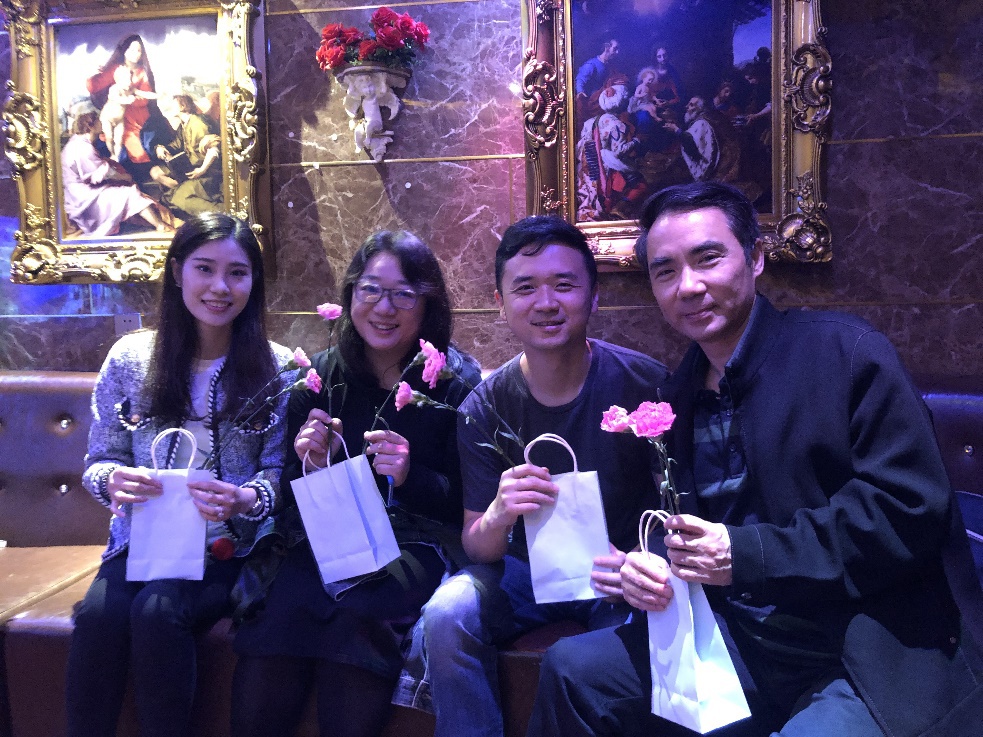餐后,大家在门口合照,之后一同展开了一系列的娱乐活动,大家还共同合唱了歌曲。在欢聚玩乐之时,2017级公事管系班长代表全班同学,将润喉糖与几支康乃馨送予老师,这代表了同学们对老师的祝福。