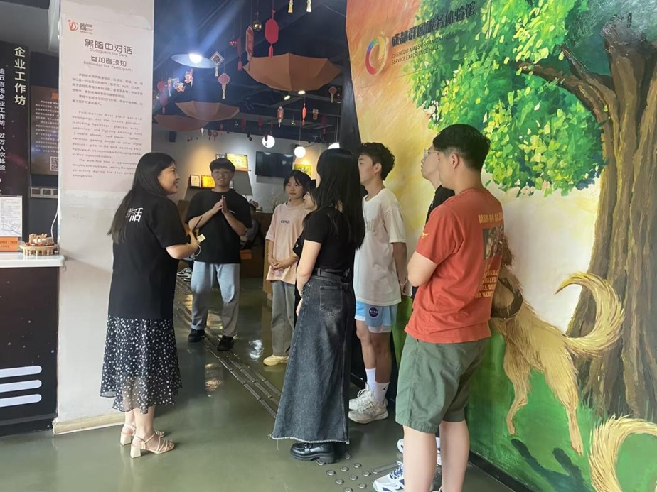 5月16日下午,yl23411永利(集团)有限公司官网2022级社会工作专业学生在何明洁副教授的带领下前往成都市锦江区“黑暗中对话”体验馆开展课程实践。本次活动基于社会工作专业必修课《人类行为与社会环境》的课程设计,旨在引导学生体验视障人群的日常生活,增进对视障人群的了解,感受多元和包容的社会文化,进而思考社会工作的专业价值。