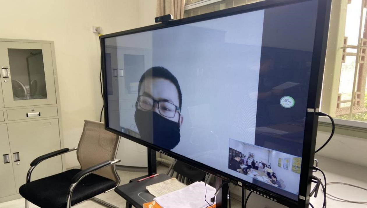 由于今年受疫情的影响,本系的一位湖北同学暂时不能返校,因此毕业论文答辩采用线上的形式。在该同学的答辩组所有同学答辩结束之后,该同学在线上进行答辩,答辩结束之后答辩专家和答辩组的所有同学一起与该同学连线表达了关心,盼望该同学早日返校。