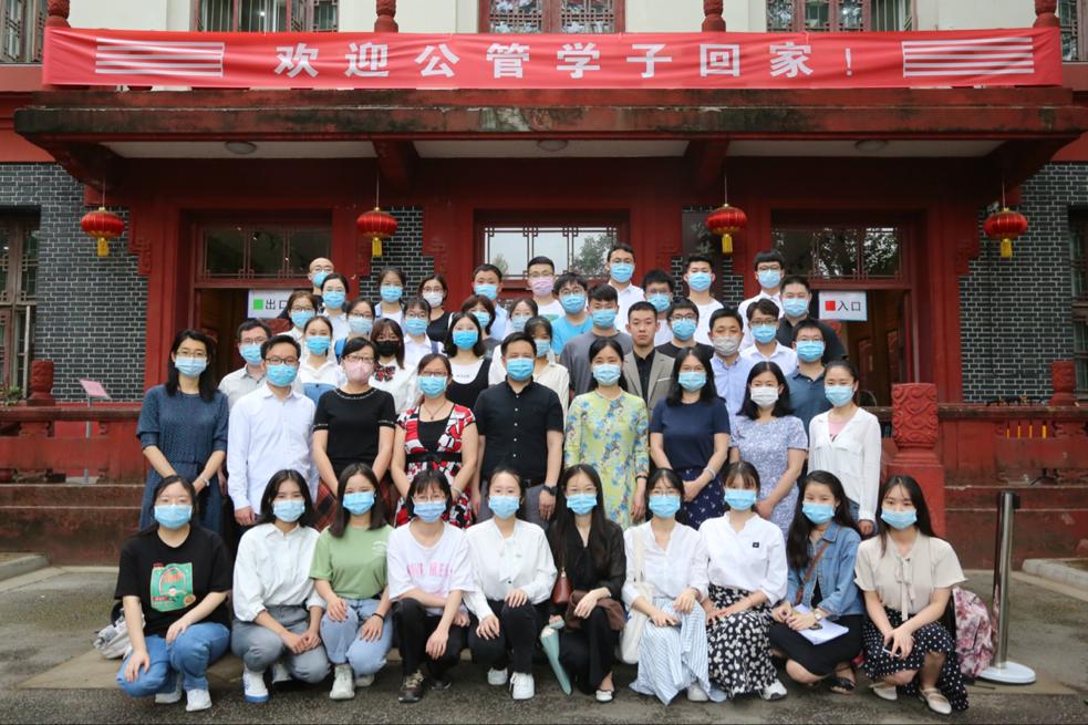 会后,参加此次答辩会的全体师生于公共管理楼前合影留念。