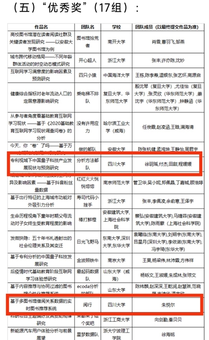 同时,我院信息资源管理专业2020级本科生徐玥瑶带领的“分析方法都队”团队和2022级本科生朱悦尔带领的“阅行”团队,表现出色,均获得“优秀奖”。
