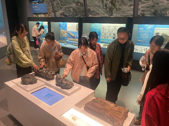 在讲解员带领下,师生一行参观了地球构造、环境与矿藏、生物与生态、灾害治理等主题,厘清了人类文化多样性与自然环境的密切关系,深化了同学们对自然与文化、生物多样性与进化适应、人环互动和谐共生等理论议题的思考。
