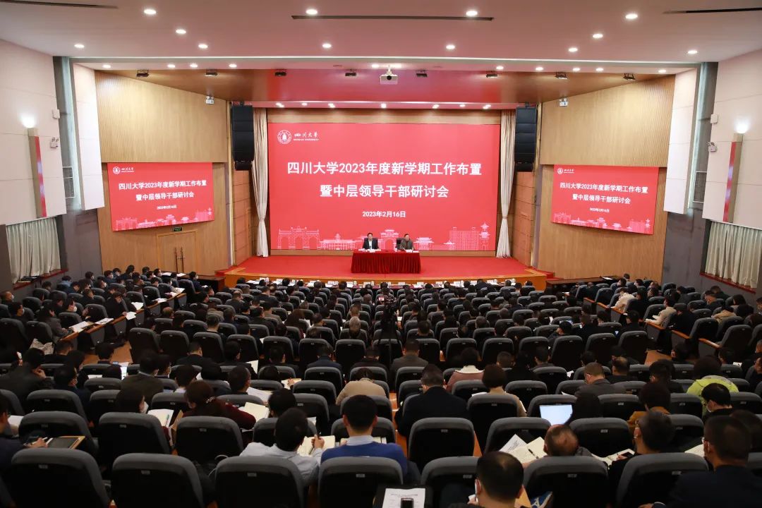 2月16-17日,学校在望江校区召开2023年度新学期工作布置暨中层领导干部研讨会,学习贯彻党的二十大精神和习近平总书记重要讲话精神,研讨2023年度学校重点工作,高质量推进中国特色世界一流大学建设。校党委书记甘霖、校长李言荣等全体校领导,冯小明院士、王琪院士、曹顺庆杰出教授、钟本和杰出教授,高层次人才代表,全体中层领导干部,专职科研机构负责人参加会议。会议由李言荣主持。