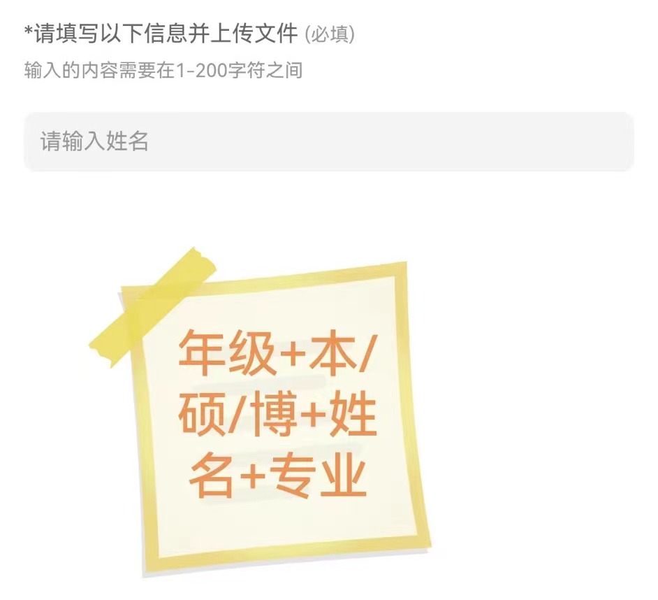 1.上传照片或视频需在姓名处填写基本信息:年级+本/硕/博+姓名+专业