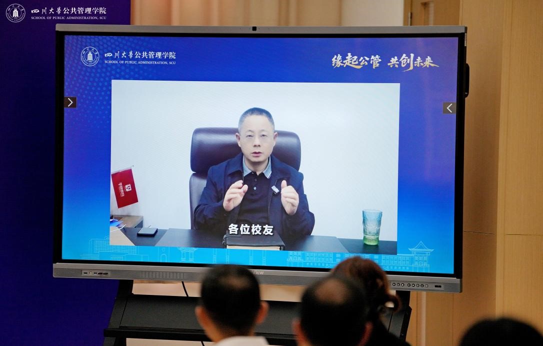 院长夏志强汇报了学院发展的基本情况,介绍了近年来学院为应对数字化和人工智能的时代浪潮,聚焦数字治理拔尖创新人才培养、学科内涵数字化转型所做的战略部署。他强调,学院校友会的成立是严格遵循学校整体部署进行的,开启了学院校友工作新篇章,为未来学院校友工作的深入开展奠定了基础、搭好了框架,希望广大校友利用好这个平台,共同建设好我们的“公管校友家园”。