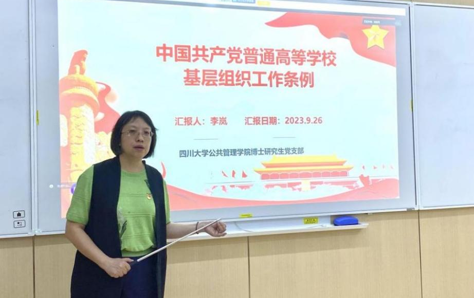 支部书记李岚老师围绕如何做好新时期高校党建工作,构建高质量党建工作体系,系统介绍了《中国共产党普通高等学校基层组织工作条例》(简称《条例》)修订的重要性和必要性。对《条例》的总则、基本任务、组织设置、工作机制、队伍保障等方面进行细致解读,为博士生党支部贯彻落实新时代高校党的组织路线、创新工作思路和举措指明方向。