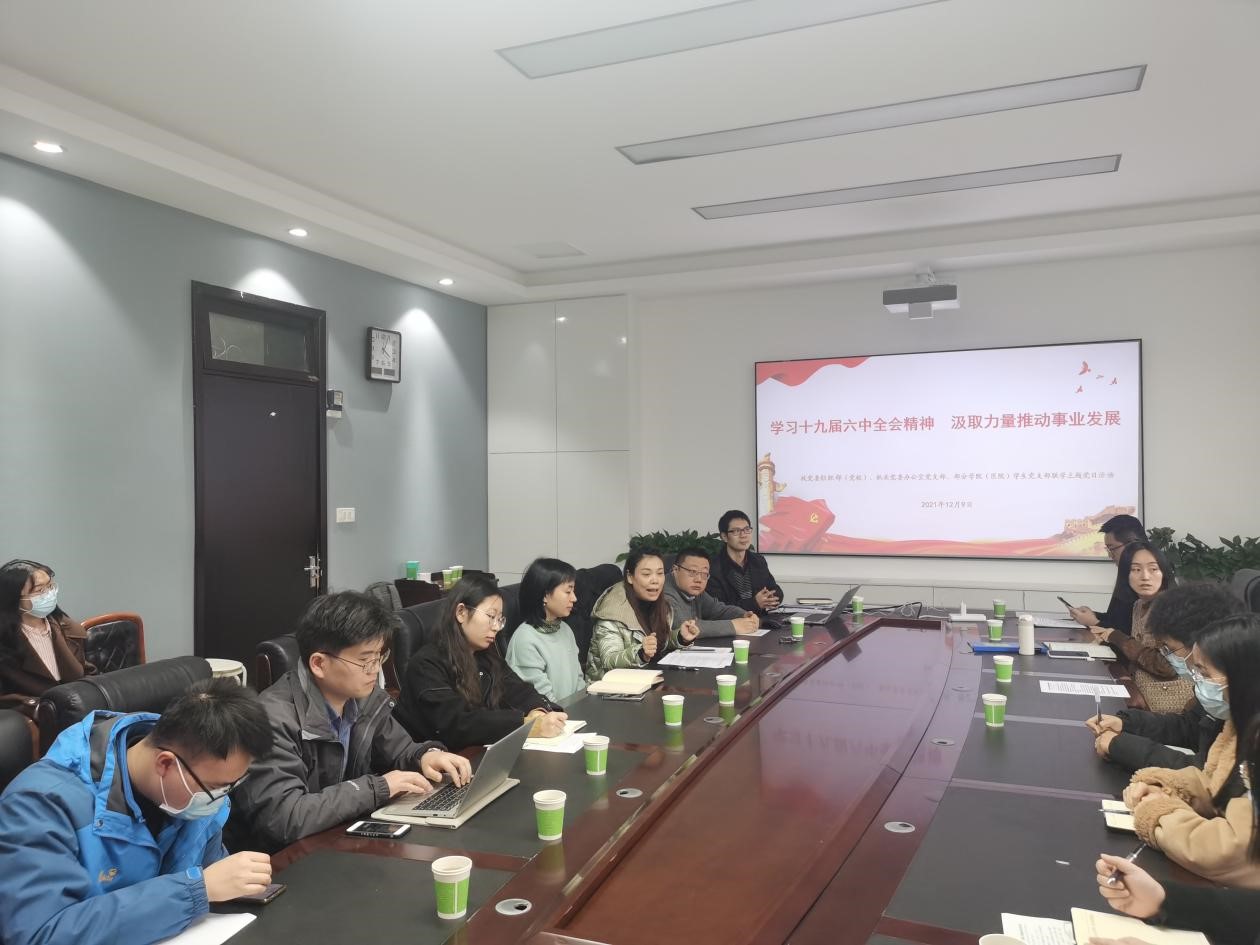 12月9日下午4时,我院研究生第三党支部与校党委组织部(党校)、机关党委办公室党支部、部分学院学生党支部联合开展的“深入学习十九届六中全会精神·汲取力量推动事业发展”主题党日活动顺利举行。四川大学党委常务副书记曹萍,四川大学关工委委员(原校党委组织部部长)汪朝清、四川大学党校常务副校长兼组织部副部长管清贵出席了本次活动,四川省委宣讲团专家库成员、四川大学历史文化学院副教授陈默做了主题报告,校党委组织部和机关党委办公室部分同志、我院研究生第三党支部、哲学系、华西二院学生党支部师生代表参与交流学习,活动由机关党委办公室主任、我院机关青年兼职辅导员马丽萍主持。